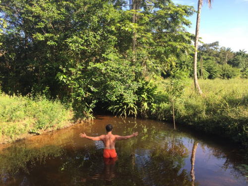 ワニの生息するちょっとした小川に入り、じゃぶじゃぶ身体を清めます♪
