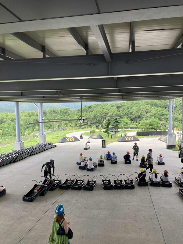 そして、アクティビティでは「スカイラインリュージュ釜山」に挑戦。リフトで山頂に上がり、専用カートでカーブやトンネルを抜けながら滑走する爽快なアトラクションは、まさに童心に返る楽しさでした。釜山の街と青い海を一望できる景色も加わり、記憶に残る体験となりました。